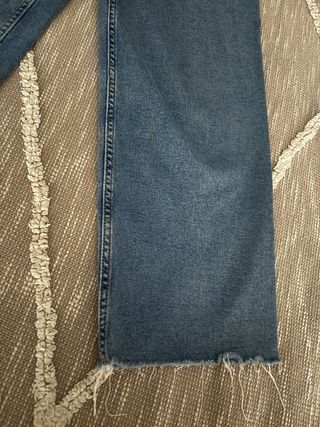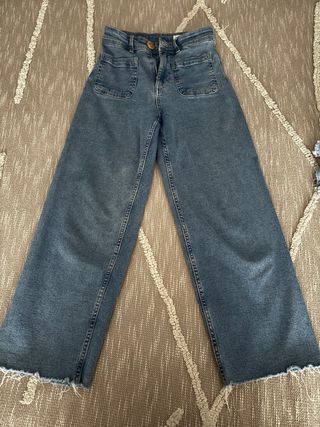 Pantalón vaquero de mujer de la marca Zara. - Corte acampanado. - Bajo deshilachado. - Bolsillos delanteros. - Tiro alto.