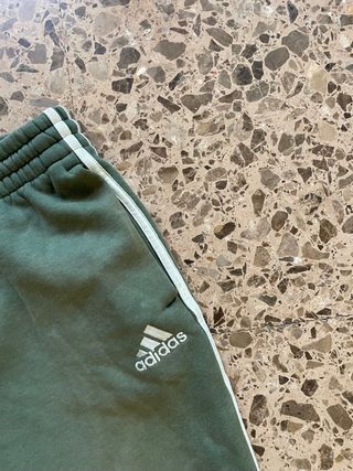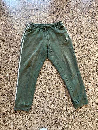 Pantalón deportivo Adidas de color verde. Cuenta con el diseño clásico de tres rayas blancas en los laterales. Talla L - Cintura elástica con cordón. - Puños ajustados en los tobillos. - Logo de Adidas bordado.