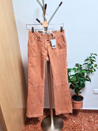 Pantalón de pana para mujer, completamente nuevo. Tejido de alta calidad, con etiquetas y botón de repuesto. Pantalón ancho y cintura baja, estilo vintage, en color marrón anaranjado. Decenio, talla 36, 100% algodón. Medidas del pantalón: Contorno de cintura: 73 cm Contorno de cadera: 99 cm Largo: 113 cm 📦 Envío rápido 🤝 Compra en persona en Torrent (Valencia)