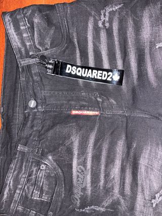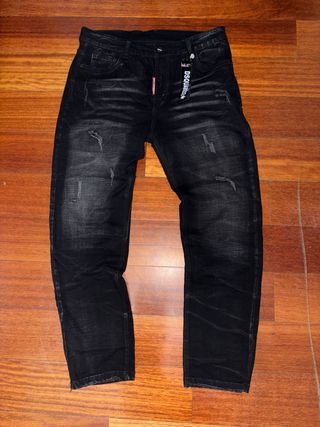 Pantalones vaqueros de la marca DSQUARED2 en color negro. Tienen un diseño moderno y desgastado. - Corte recto. - Detalle de rotos y desgastes. - Cierre de cremallera y botón. - Bolsillos delanteros y traseros. - precio cada uno.