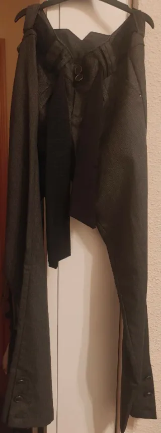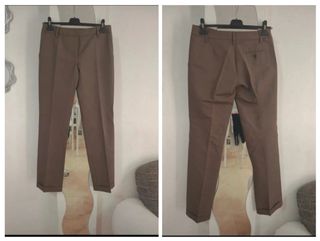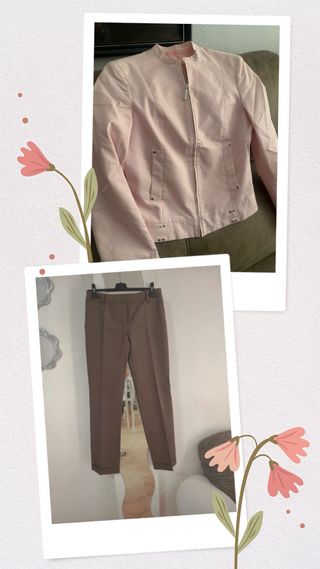Conjunto de dos prendas . - Chaqueta rosa pastel con cremallera, bolsillos y forrada. Queda entallada. - Pantalón marrón de corte recto, con bajos doblados. -Ambas prendas nuevas, dan menos talla de la que marcan por eso las vendo. - Por separado 10€ cada una