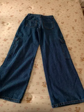 Pantalón vaquero estilo cargo, con un corte ancho y moderno. - Diseño de cinco bolsillos. - Cierre de cremallera y botón. - Trabillas para cinturón.