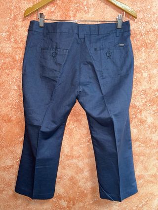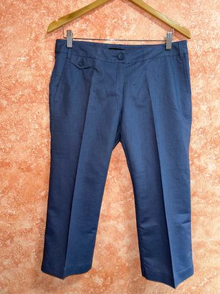 Pantalón de vestir para mujer, estilo pirata (por la rodilla) de lino color azul marino. Prácticamente no se ha llegado a utilizar.