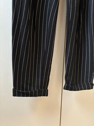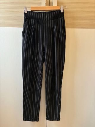 Pantalones de vestir con un diseño de rayas verticales. Utilizado en dos ocasiones. Cintura alta. 99cm de largo, 76cm de cintura y 103cm de cadera. No estira.