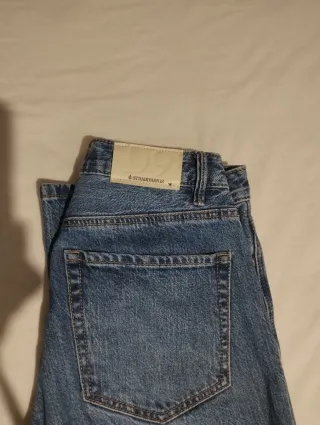 Pantalón vaquero de Bershka. Solo una puesta - Corte recto. - Tiro alto. - Cierre de cremallera y botón.