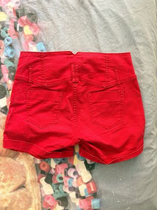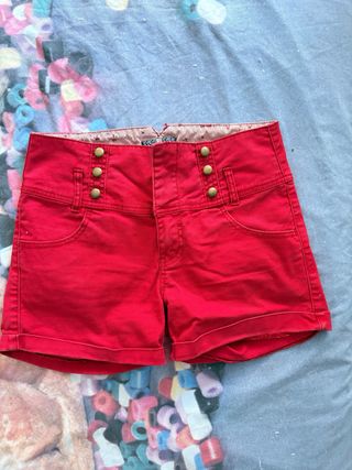 Pantalones cortos de color rojo con un diseño de cintura alta. - Cierre de botones. - Bolsillos laterales. - Dobladillo en los bajos.