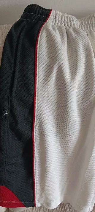 Pantalón corto de baloncesto de la marca Jordan. - Diseño con paneles laterales en negro y detalles en rojo. - Cintura elástica. - Tejido ligero y transpirable.