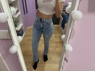 Pantalón vaquero de Bershka en talla M. Un básico para tu armario. - Corte ajustado. - Tejido denim. - Tiro alto.