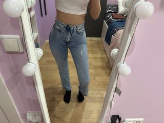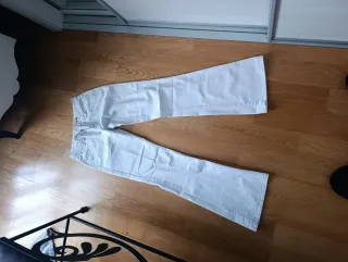🛍️ Pantalón largo vaquero azul blanco ,tiene cosido un poco la rotura del pantalón,pero en buen estado 🧸Talla:M 👑Marca: Stradivarius 🧲Material: algodón, elastano 📚Color: blanco,azul ☎️Información🗒️: si desea puedo proporcionarle más fotos y medidas, como cualquier duda que tenga.❔