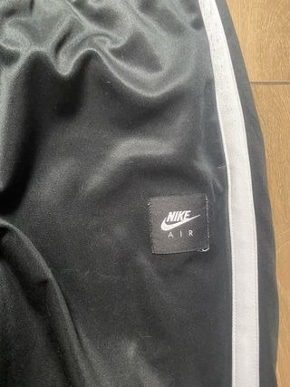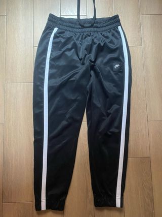 Pantalones deportivos Nike Air en color negro. Cuentan con un diseño moderno y detalles distintivos. - Cintura elástica con cordón. - Raya lateral blanca. - Logo de Nike Air en la pierna.