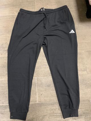 Pantalón de chándal Adidas en color negro. Cómodo y versátil. - Logo de Adidas en la pierna. - Cintura elástica con cordón. - Puños ajustados en los tobillos.
