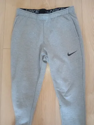 Pantalón deportivo Nike de color gris, ideal para entrenar o para el día a día. - Cintura elástica con logo. - Bolsillos laterales.