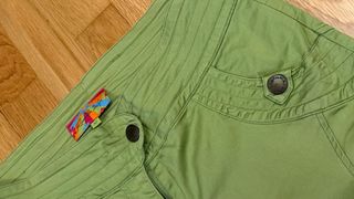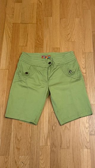 Pantalón corto de color verde. En muy buen estado, puesto una sola vez - Cintura con pliegues decorativos. - Bolsillos delanteros con botón. - Diseño moderno.n muy buen