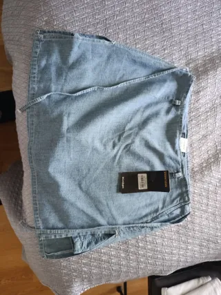 Minifalda pantalón vaquera fina, ideal para un look casual. - Tejido vaquero ligero. - Diseño tipo pantalón corto. - Cierre con cordones.