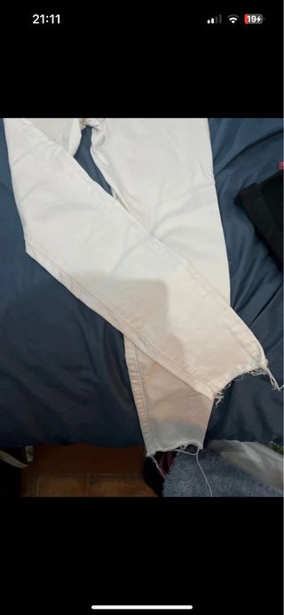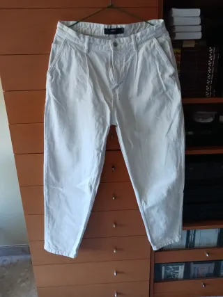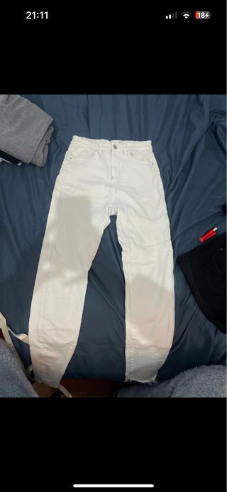 Pantalón tejano de corte moderno.PULL&BEAR - Tejano de invierno - Color blanco. - Diseño con pinzas en la parte delantera. - Cintura con trabillas para cinturón. - En mi perfil hay más cosas interesantes.