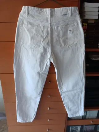 Pantalones vaqueros blancos de Stradivarius. - Corte ancho. - Tiro bajo/medio - Bolsillos delanteros y traseros.