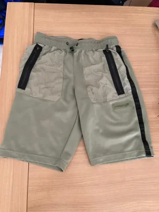 Pantalón corto de estilo deportivo con detalles modernos. - Cintura elástica con cordón. - Bolsillos laterales con cremallera. - Panel de tela texturizada en los bolsillos. - Raya lateral decorativa.
