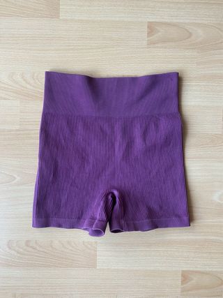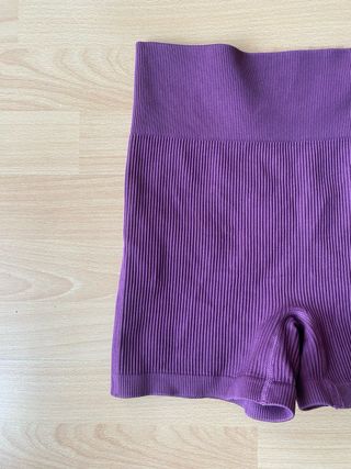 Pantalones cortos de deporte de color morado, de cintura muy alta.