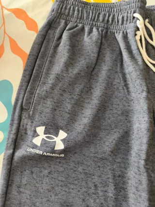 Pantalones deportivos Under Armour de color gris jaspeado. Cuentan con cordón ajustable en la cintura y bolsillos laterales. Nuevos a estrenar, con la etiqueta. - Logo de Under Armour en blanco. - Tejido suave y cómodo.