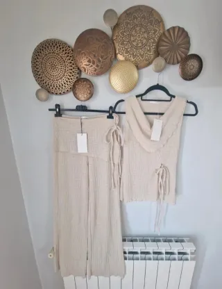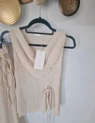 Conjunto pantalón y top Zara beige