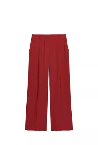 Pantalón de vestir de corte ancho en color rojo. - Cintura alta. - Pinzas delanteras. - Bolsillos laterales.