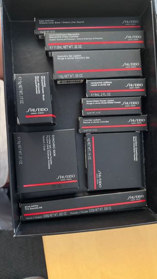 Lote de productos de maquillaje Shiseido previo mercado 240 € - Kajal InkArtist - ControlledChaos Mascaraink - VisionAiry Gel Lipstick - Minimalist Whipped Powder Blush - Synchro Skin Invisible Silk Loose Powder - Brow Ink Trio - Lacquerink LipShine - ModernMatte Powder Lipstick - ColorGel LipBalm - InnerGlow Cheek Powder