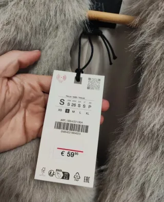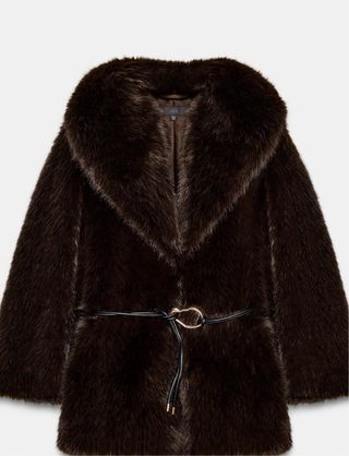 Elegante abrigo de Zara, perfecto para añadir un toque sofisticado a tu armario. Sin estrenar. - Diseño de pelo sintético. - Cinturón con detalle metálico. - Cuello amplio.
