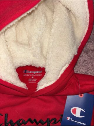 Sudadera con capucha de la marca Champion en color rojo. Perfecta para mantenerte abrigado. - Diseño con capucha. - Bolsillo frontal tipo canguro. - Interior forrado para mayor calidez. - Logo de Champion en el pecho y manga.