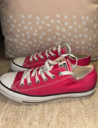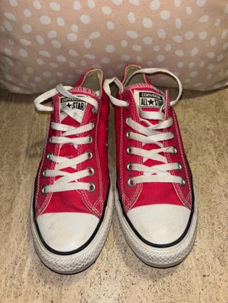Zapatillas Converse All Star de corte bajo en color rojo y blanco. Un clásico para el día a día. - Cierre con cordones blancos. - Suela de goma. - Logo de Converse en la lengüeta y el talón.