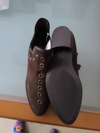 Botines de ante en color marrón chocolate. - Detalle de tachuelas. - Cremallera lateral para facilitar el calce.