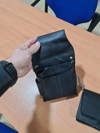 Set de cartera y funda de camarero. - Material de cuero. - Color negro.