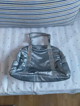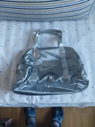 Bolso deportivo Nike con un acabado brillante. - Color plateado. - Logo de Nike en relieve.