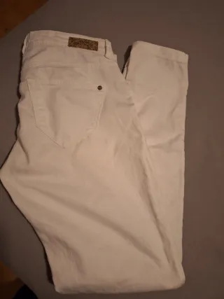 Pantalón vaquero de color blanco de la marca Bershka. - Talla 38.