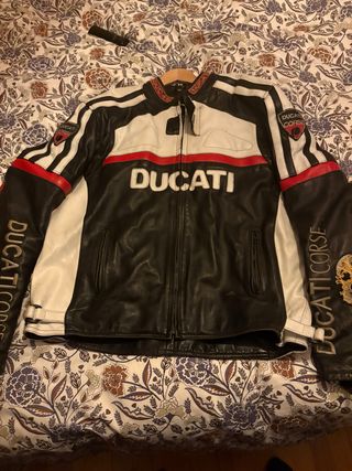 Chaqueta Piel Moto Ducati Corse Negra Roja Blanca