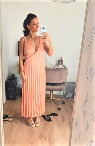 Vestido midi Zara salmón plisado cadena dorada