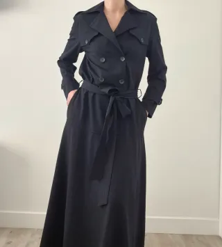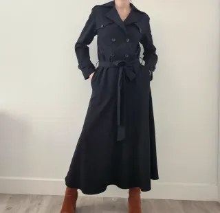 Elegante vestido estilo gabardina de Zara. Su diseño largo y de manga larga lo hace perfecto para diversas ocasiones. Talla S. Nuevo con etiqueta. Precio no negociable. Hago envíos - Cierre cruzado con botones. - Cinturón a juego para ajustar la cintura. - Bolsillos laterales. - Corte evasé en la falda.