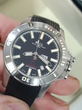 Reloj automático de la marca Ball con certificación CHRONOMETER (COSC) y resistencia anti-magnética. Un accesorio elegante y funcional. -Serie limitada - Esfera negra, cristal zafiro anti Reflectante de 4mm. - Bisel plateado con marcadores.42mm, Corona roscada. - Correa de caucho negra. -Modelo Silver Fox Hydrocarbon - Tubos de Tritio H3. SOLO entrega en mano el Madrid o envío previo Pago
