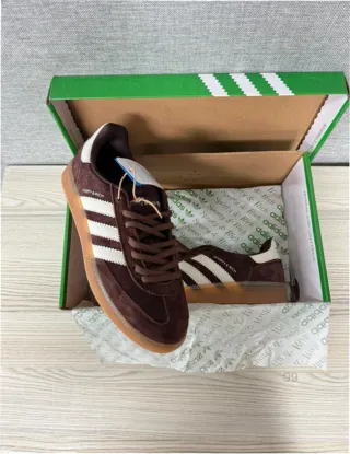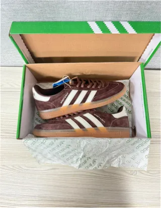 Zapatillas Adidas Handball Spezial en colaboración con Sporty & Rich. Un diseño clásico con un toque moderno. - Exterior de ante marrón. - Detalle de las tres rayas blancas. - Suela de goma. - Logo de Sporty & Rich en el lateral.