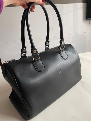 Elegante bolso de mano de la marca Pierre Cardin. - Fabricado en piel. - Diseño tipo barril. - Asas cómodas para llevar al hombro o en la mano. - Cierre de cremallera. - Logo de la marca grabado en relieve.