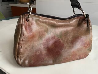 Bolso de piel marrón con estampado floral