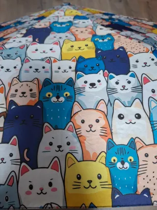 Paraguas con un alegre diseño lleno de gatitos de diferentes colores. Perfecto para añadir un toque divertido a los días grises. - Estampado de gatos en múltiples tonalidades. - Diseño circular.