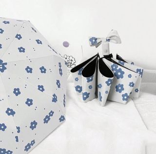 Paraguas plegable con un bonito estampado de flores azules sobre fondo blanco. Incluye una funda a juego. - Diseño floral. - Plegable y compacto.