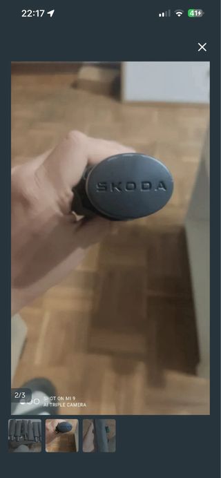 Paragüas con el escudo y los colores del Real Madrid. - Diseño con el logo del club. - Patrón de rayas blancas y azules. Lo único que tiene son algunas manchitas, pero se puede utilizar perfectamente.