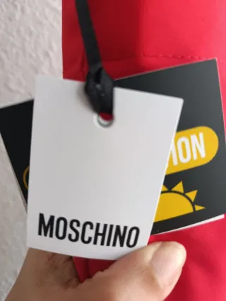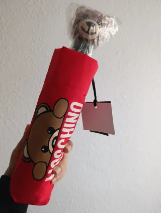 Paraguas plegable de la marca Moschino con un diseño de oso. - Viene con su caja original. - Color marrón y blanco. - Caja de regalo + estuche grande del osito con el paraguas en su interior.