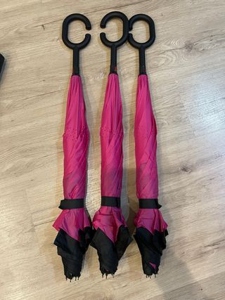Paraguas reversible con un diseño práctico y moderno. - Mango en forma de C para colgar. - Tela resistente. Ultimas unidades