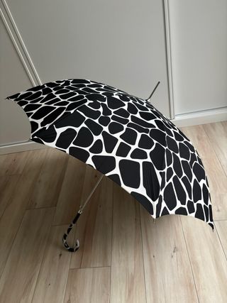 Paraguas con estampado en blanco y negro de la marca Jani Markel Resistente con apertura automática En muy buen estado, poco uso Medida largo 90 cm