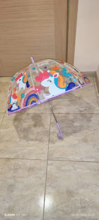 Paraguas infantil transparente unicornio