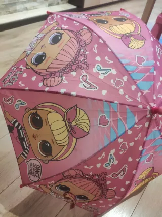 Paraguas con un divertido diseño de LOL. - Color rosa vibrante. - Ideal para niñas.