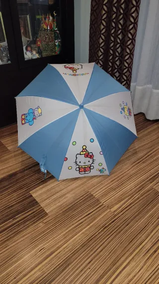 Paraguas infantil Hello Kitty azul y blanco