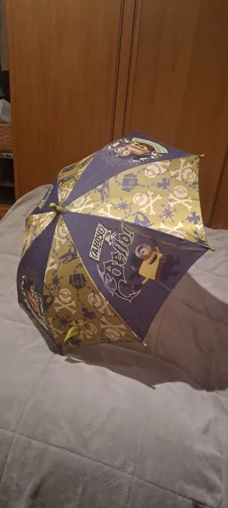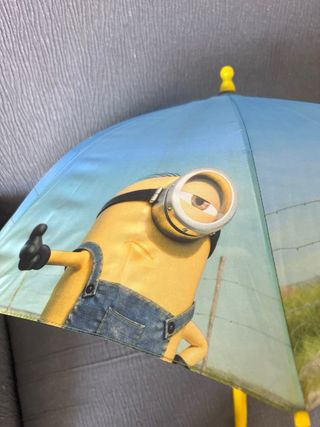 Paraguas infantil con divertido diseño de los Minions. Tiene 70 cm de diámetro abierto. Esta perfecto, no tiene rotos ni descosidos. Las varillas están perfectas.